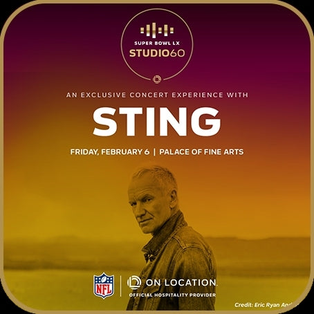 "Witnessing a larger-than-life icon like Sting perform in an intimate venue such as The Palace of Fine Arts on Super Bowl weekend is a once-in-a-lifetime experience," said Paul Caine, President of On Location. "The Super Bowl is more than just a game, and On Location delivers more than just a ticket. Through incredible hospitality and unique experiences, we bring fans closer than ever to the weekend-long celebration of sport, music, food, and culture that the Super Bowl has become globally recognized for."